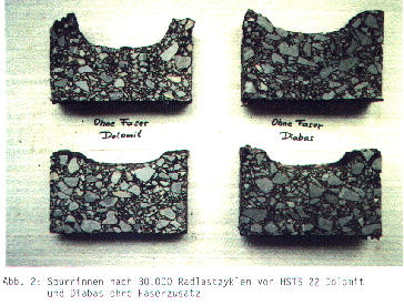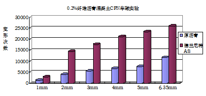 另外根據(jù)奧地利聯(lián)邦經(jīng)濟(jì)事務(wù)部科研項(xiàng)目3.137《對(duì)添加纖維的高穩(wěn)固瀝青混凝土的長(zhǎng)期10年觀察》:加入0.3%的德蘭尼特AS纖維與不加或加入其它纖維的瀝青混凝土相比,路面車轍可減少60%。因?yàn)榈绿m尼特AS纖維均有明顯突起的“觸角”,且比木質(zhì)素纖維要粗,故其加筋效果要明顯;纖維的長(zhǎng)徑比越大,作用效果越好,所以德蘭尼特AS纖維比其它纖維抗車轍能力更強(qiáng)。