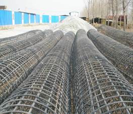 (3)玻璃纖維筋籠制作過程中應(yīng)注意采取增加玻璃纖維筋筋籠剛度的措施(如筋籠兩側(cè)采用工字鋼包邊、筋籠內(nèi)部采用一些玻璃纖維筋桁架或后期可以去除的鋼筋桁架等等),以防止在吊裝以及運(yùn)輸過程中出現(xiàn)較大的變形。